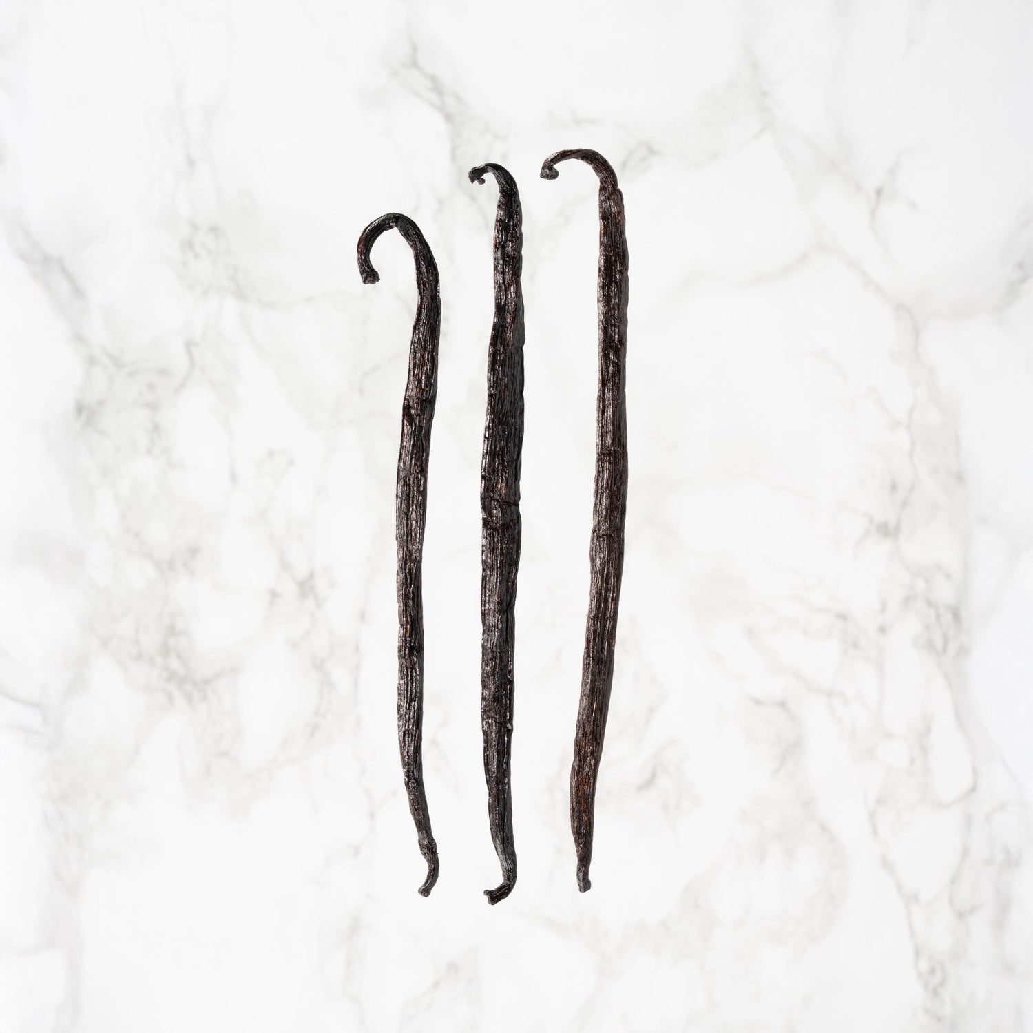 La vanille planifolia Bourbon (Madagascar) est très riche en vanilline, avec des notes chaudes et boisées. La Tahitensis, qui ne contient quasiment pas de vanilline, plus florale, offre des arômes plus subtils et exotiques. Chaque variété a sa personnalité !