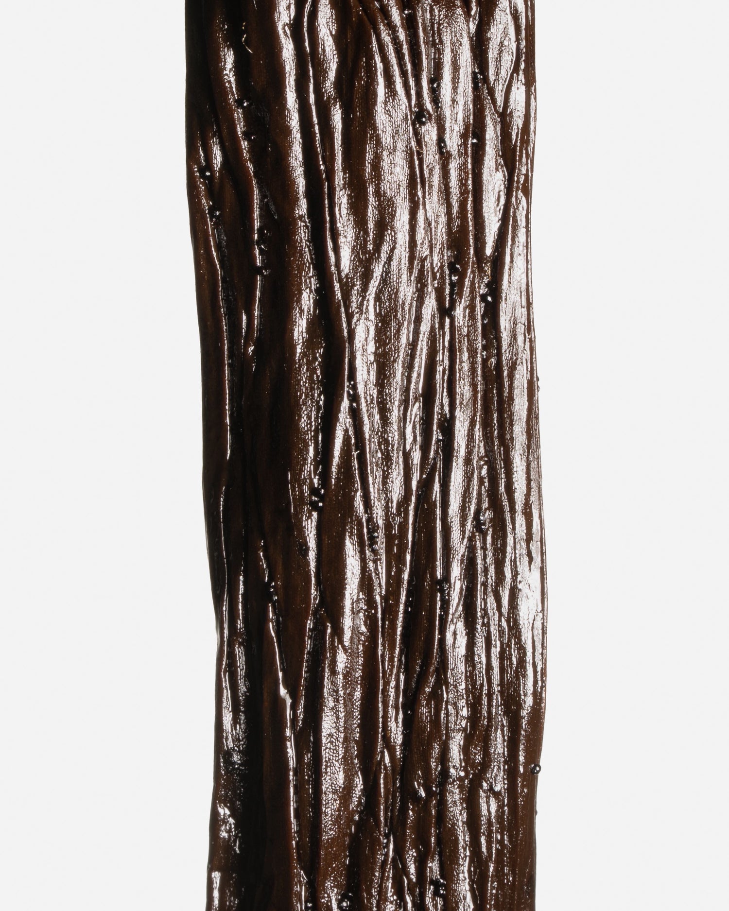 Cette vanille est exceptionnellement grasse, de petite taille mais très charnue, et riche en grains de vanille.