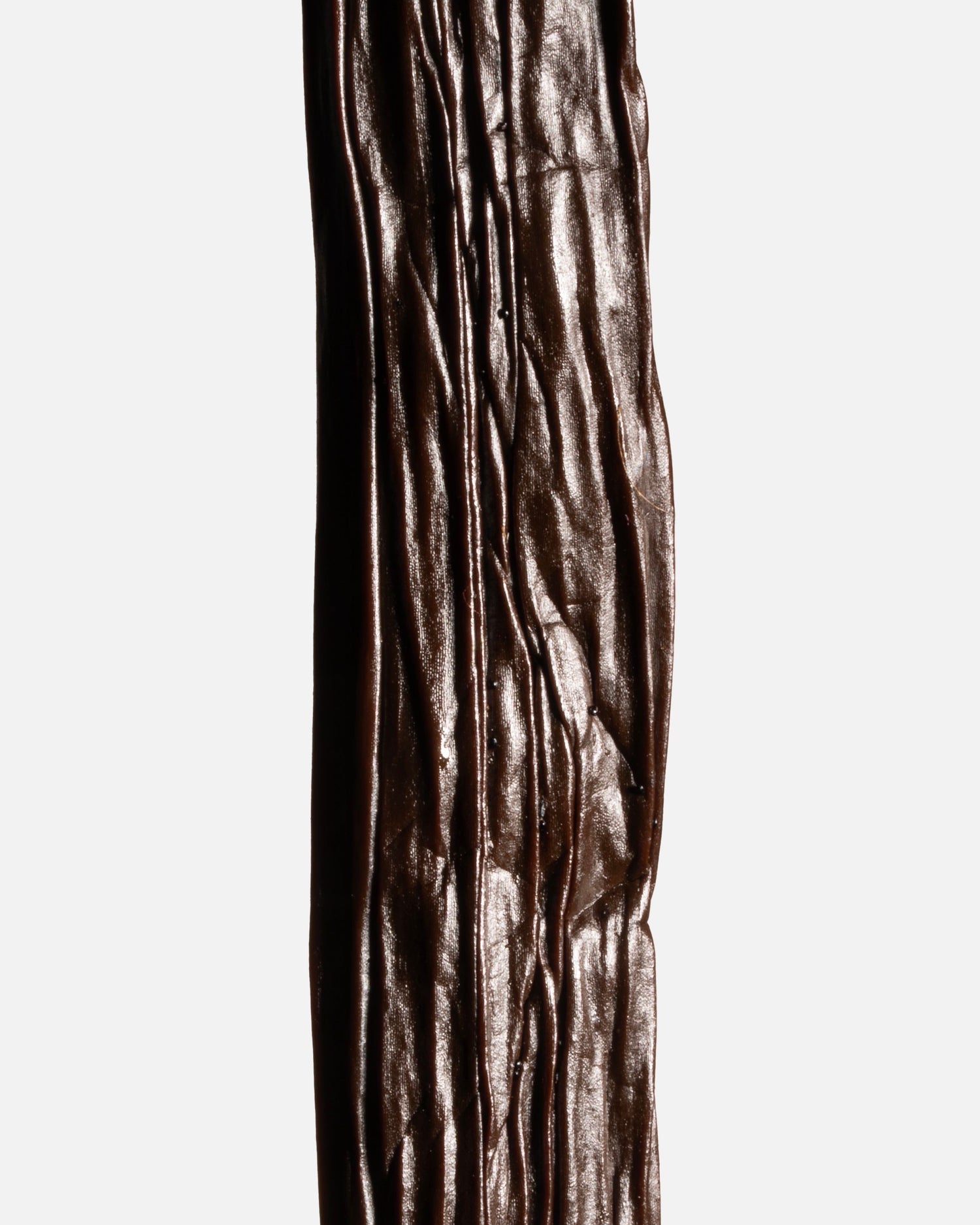 Cette vanille est exceptionnellement grasse, de petite taille mais très charnue, et riche en grains de vanille.
