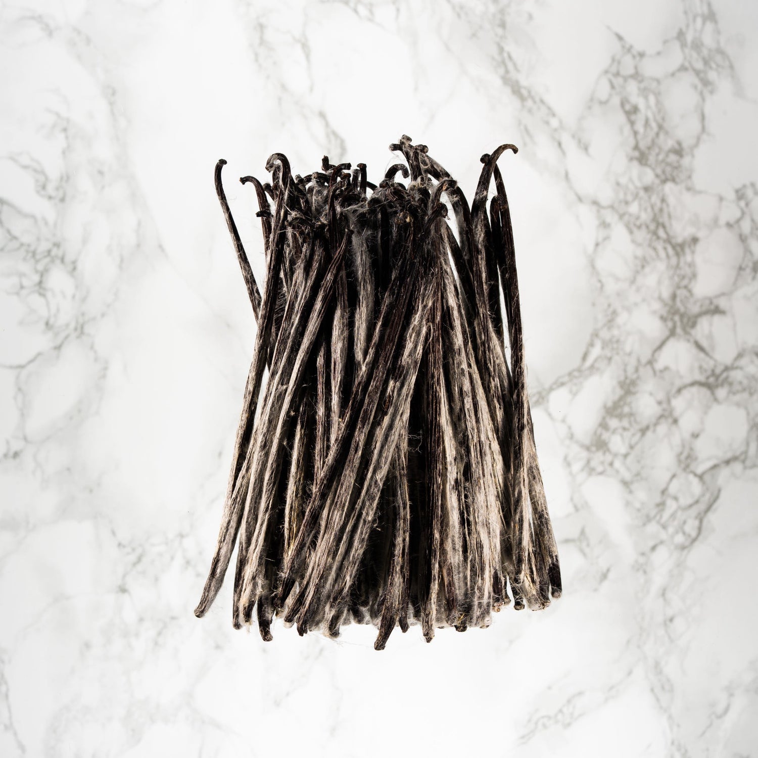Issue de la Vanille planifolia, cette vanille bénéficie d’un affinage parfaitement maîtrisé. Un travail précis, accompagné par une approche scientifique exigeante, pousse le taux de vanilline à son maximum naturel. Les gousses se couvrent alors d’une cristallisation spectaculaire : une poudre blanche, fine comme du coton, qui enveloppe la robe brune.