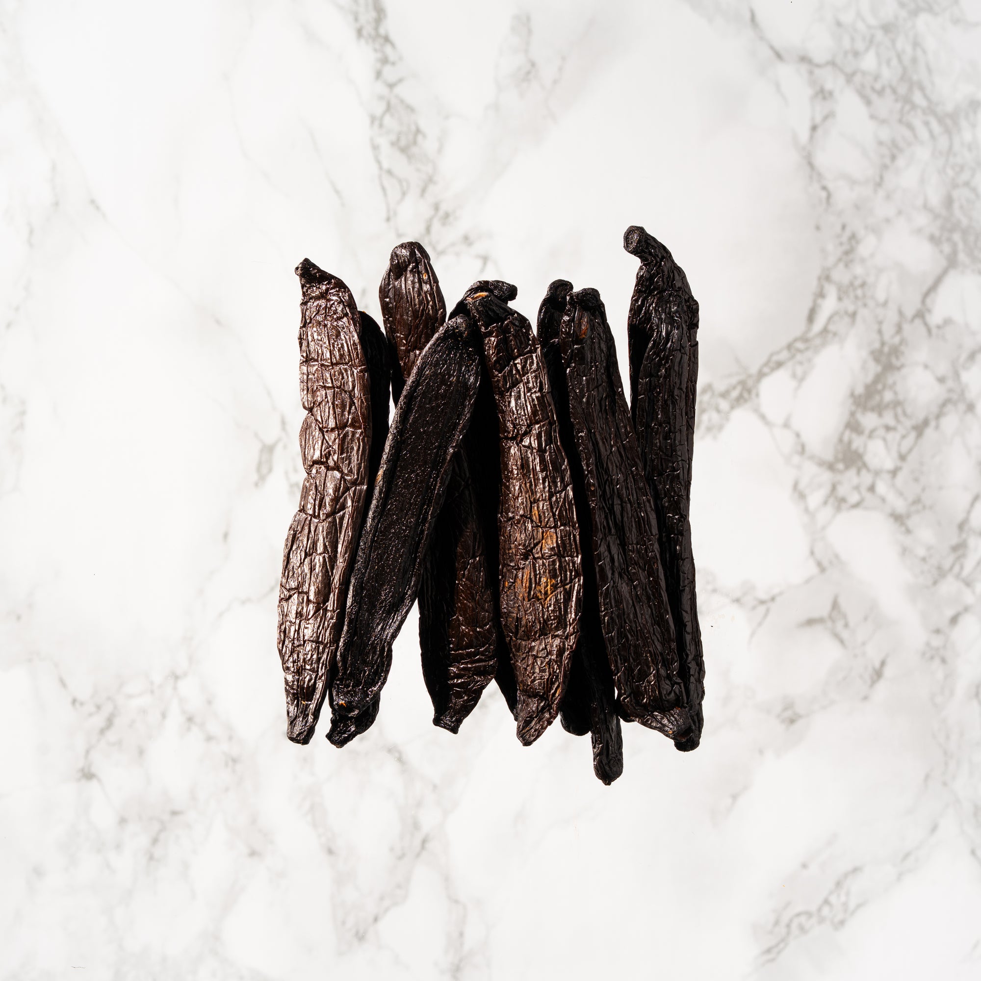 En Chinantla, les lianes de vanille s'enroulent autour de plants d'agrumes, de bananes ou d'arbres locaux comme le caoba. Les gousses de vanille Pompona, parmi les variétés originelles du Mexique, se distinguent par leur saveur intense et leurs notes florales, beurrées et fruitées. Chaque colibri pollinise les plus belles fleurs d'une grappe, garantissant des gousses d'une qualité exceptionnelle.